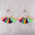 Une paire de boucles d'oreilles et ses pompons en macramé.